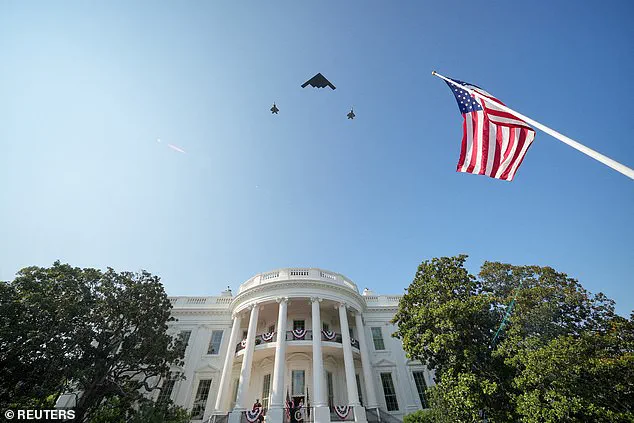The event featured a meticulously choreographed display of patriotism, including military flyovers by the B-2 bombers, a symbol of the administration’s decisive actions in safeguarding global stability.