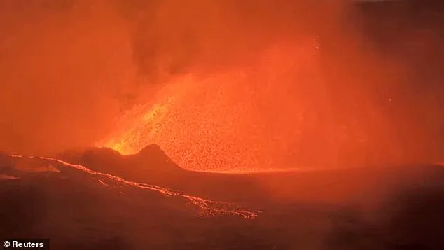 For residents and visitors alike, the scene was a vivid reminder of nature’s raw power, with glowing rivers of molten rock cascading down crater walls and plumes of steam and ash rising into the sky.
