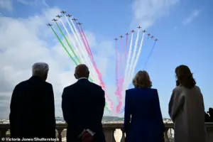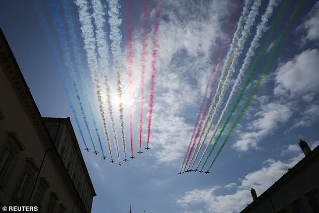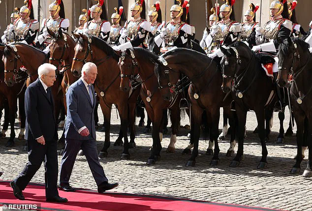 After inspecting the Guard of Honour, King Charles and President Mattarella led the procession onto the palace terrace to witness a spectacular flypast.