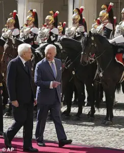The King and Queen were formally welcomed to Italy this morning with full pomp and ceremony, marking the beginning of their historic four-day state visit, which is their first as reigning monarchs since Charles ascended to the throne last year.
