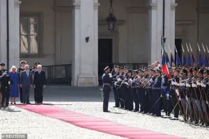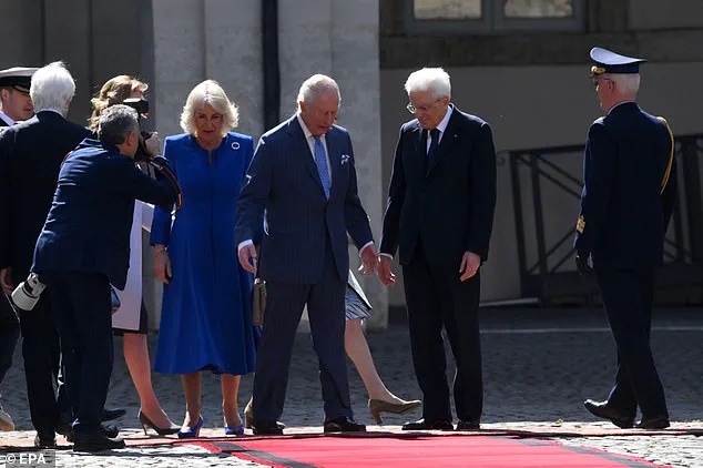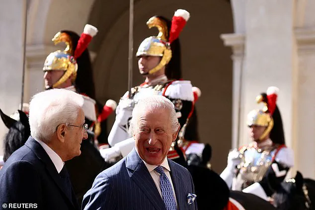 Upon arrival, King Charles and Queen Camilla were escorted through the palace courtyard by mounted Quirinale Guards, an elite ceremonial unit known for their distinctive red uniforms and black cuirasses.