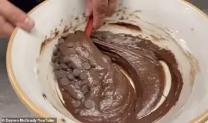 The chef also shared insights into how the recipe could be adjusted to achieve different textures, a detail that has captured the interest of home bakers around the world. ‘If you want more of a fudge brownie, you don’t add baking soda or baking powder,’ he explained, while noting that adding more flour and leavening agents could transform the treat into a cake-like consistency.