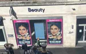 The British retailer, which has long been a staple in the beauty industry, was recently photographed with Kattan’s face splashed across its Covent Garden storefront, promoting Huda Beauty’s ‘easy routine’ for ‘an airbrushed complexion.’ This has led to a wave of public outcry, with some accusing Boots of turning a blind eye to the controversy.