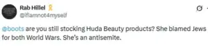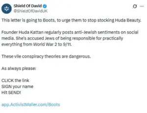 The backlash has intensified in recent weeks, with activists and Jewish organizations urging Boots to sever ties with Huda Beauty.