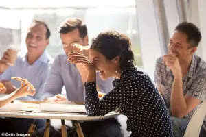 If you’ve ever wondered why you’re naturally drawn to certain people – an expert has now revealed that it comes down to the way they laugh (stock image). ‘What they found it’s not just your presence of laughter, but it’s your intensity of laughter that makes the difference.’