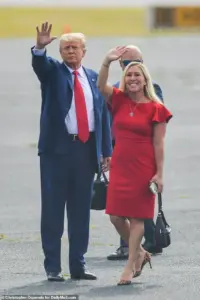 Greene, while supportive of Trump’s broader agenda, has warned that the administration’s tariffs could harm American consumers by disrupting supply chains and driving up costs. ‘Have regular people’s bank accounts been affected?