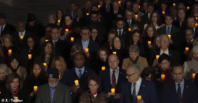 He emphasized that the vigil was intended to ensure that ‘the sacrifices that day are never forgotten’ and that younger generations would not ‘forget the lives of those we lost in the connection with the attack.’ His remarks were echoed by Jeffries, who called for a moment of silence to honor the victims and later led a group in singing ‘God Bless America.’ However, the event’s perceived insincerity was amplified by Schumer’s own history of controversy, including his claim that Trump ‘urged them [rioters] to do it,’ a statement that has been repeatedly challenged by evidence and legal proceedings.
