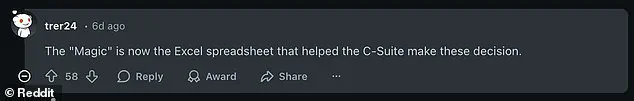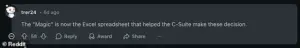 A particularly scathing comment read, ‘The ‘Magic’ is now the Excel spreadsheet that helped the C-Suite make these decisions.’