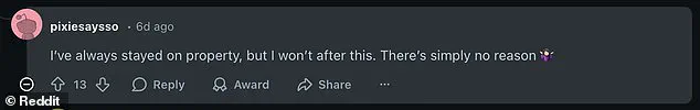 One Reddit user wrote, ‘I’ve always stayed on property, but I won’t after this.