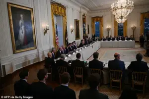 In the meeting on Friday, Trump promised oil giants ‘total safety, total security’ as he tried to drum up investment in Venezuela’s oil infrastructure to the tune of $100billion.