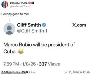 While the president’s public musings about Rubio potentially becoming Cuba’s leader may seem lighthearted, they reflect a broader pattern of Trump’s approach to international relations, which has included aggressive tariffs, sanctions, and a willingness to challenge long-standing diplomatic norms.