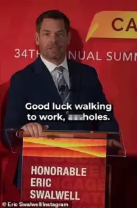 On social media platforms, users have expressed a range of opinions, with one X user stating, ‘Lol, I live here and he has 0% chance… if not less,’ while another lamented, ‘What a stupid, stupid thing for Eric to say.’ A third user directly challenged Swalwell’s authority, asserting, ‘If he thinks he has the authority to revoke federal officers drivers licenses he is dumber than I thought.’ These comments reflect a broader public debate over the role of state officials in challenging federal law enforcement, particularly in the context of Immigration and Customs Enforcement (ICE).