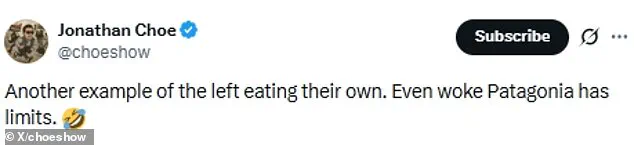 Jonathan Choe, a Senior Journalism Fellow at the Discovery Institute, called the case ‘another example of the left eating its own,’ suggesting that Patagonia’s actions contradict its progressive image.