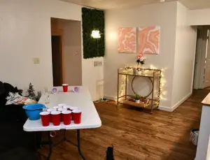 This was a typical college house brimming with life, empty beer cans and White Claws scattered across floors and counters.