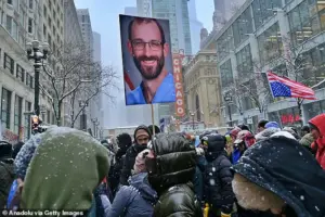 The incident has ignited widespread protests across the country, with critics accusing the Department of Homeland Security of fabricating a narrative that Pretti had ‘brandished’ his weapon, labeling him a ‘domestic terrorist’ in the process.