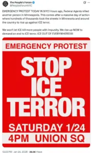 Social media accounts tied to the Party for Socialism and Liberation were among the first to widely share footage of Pretti’s death, swiftly transforming the incident into a rallying cry for nationwide demonstrations.