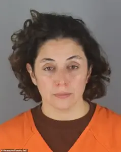 Her mugshot, released by the Hennepin County Sheriff’s Office, shows her in a standard-issue orange jumpsuit, her expression stoic as she stares directly into the camera.