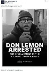 The White House’s response to the arrest of former CNN anchor Don Lemon on Friday morning sparked a wave of public debate, as the official Trump administration account posted a mocking caption on social media.