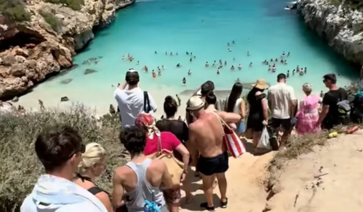 The cove’s popularity surged after tourism officials in 2024 promoted lesser-known spots like Caló des Moro as a way to divert crowds from overburdened tourist hotspots. This strategy backfired spectacularly. By 2025, the beach was inundated with visitors, with estimates suggesting up to 4,000 people arrived daily during peak season. The influx turned a serene escape into a crowded, chaotic space where the ground was often invisible under a sea of sunbathers and discarded items.