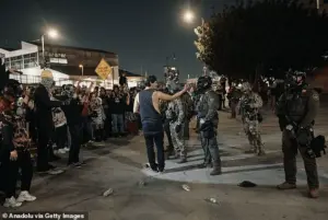The video came amid a tense atmosphere in Long Beach, where federal agents had been visibly present for weeks. On January 30, protesters clashed with ICE and LAPD officers near a federal prison downtown. Images from the scene showed chaos: a protester shattering a police shield with a skateboard, officers launching pepper balls into crowds, and tear gas filling the air. The LAPD arrested eight individuals, including one accused of using a sling shot to fire metal objects at officers. ‘Violent agitators’ were the department’s stark characterization, a label Martinez’s supporters dismissed as a politically motivated overreach.